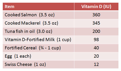 The body can produce vitamin D when exposed to UV rays from the sun (without sunscreen). However, the ideal amount of sun exposure for sufficient vitamin D production varies based on individual skin pigmentation, and the safety concerns of daily unprotected sun exposure make it difficult to recommend that people meet their vitamin D requirements by spending time in the sun. In addition, there are very few natural sources of vitamin D as presented in Table 1. Fortified milk is a good source for children and adolescents, but there is evidence that milk intake has declined in recent years. To get the daily recommended amount of vitamin D, kids would have to drink approximately four cups (32 ounces) of vitamin D-fortified milk every day.
