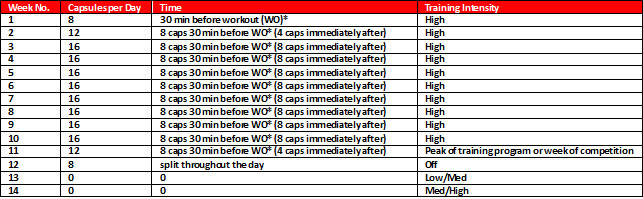 * For the maximum effect of creatine supplementation and increases in cell volume, all dosages should be taken with 25-45g of carbohydrate.